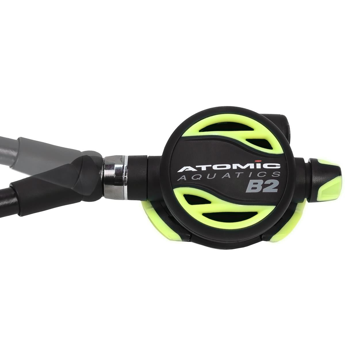 The B2 Octopus is easily the most comfortable and easy to use safe second ever designed with all-Titanium construction for corrosion protection and light weight. The B2 Octopus delivers all the patented Atomic features of the B2 primary model, including the comfort swivel as standard. The comfort swivel is the perfect design aspect for a safe second. The B2 safe second stage features critical metal components of the demand valve that are made of titanium and is completely corrosion proof. The B2 has a titanium demand valve body, lever and sealing orifice.