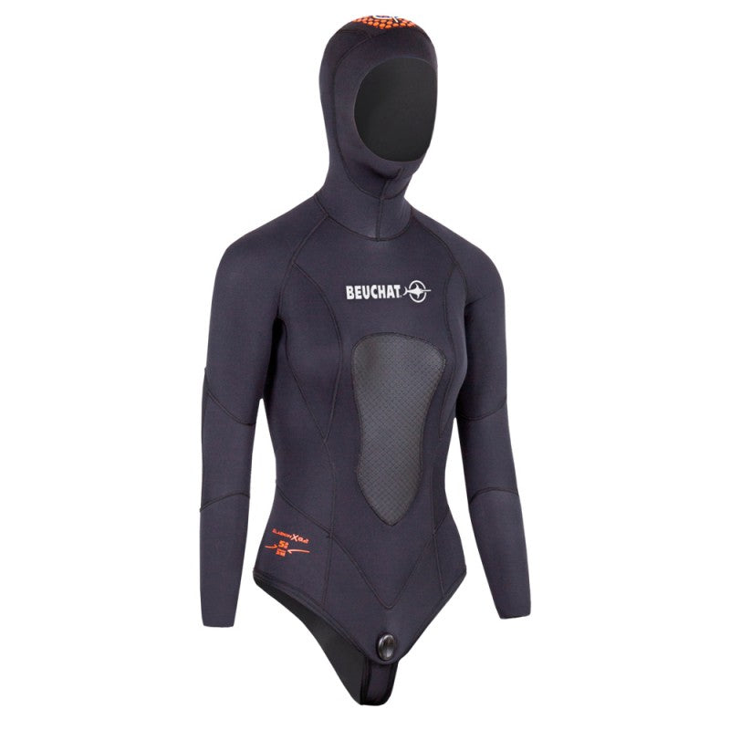 Large red strip on the hood to improve safety from the surface or by the teammate. Open cell interior for maximum warmth Cut designed for women Cutaway long john with...