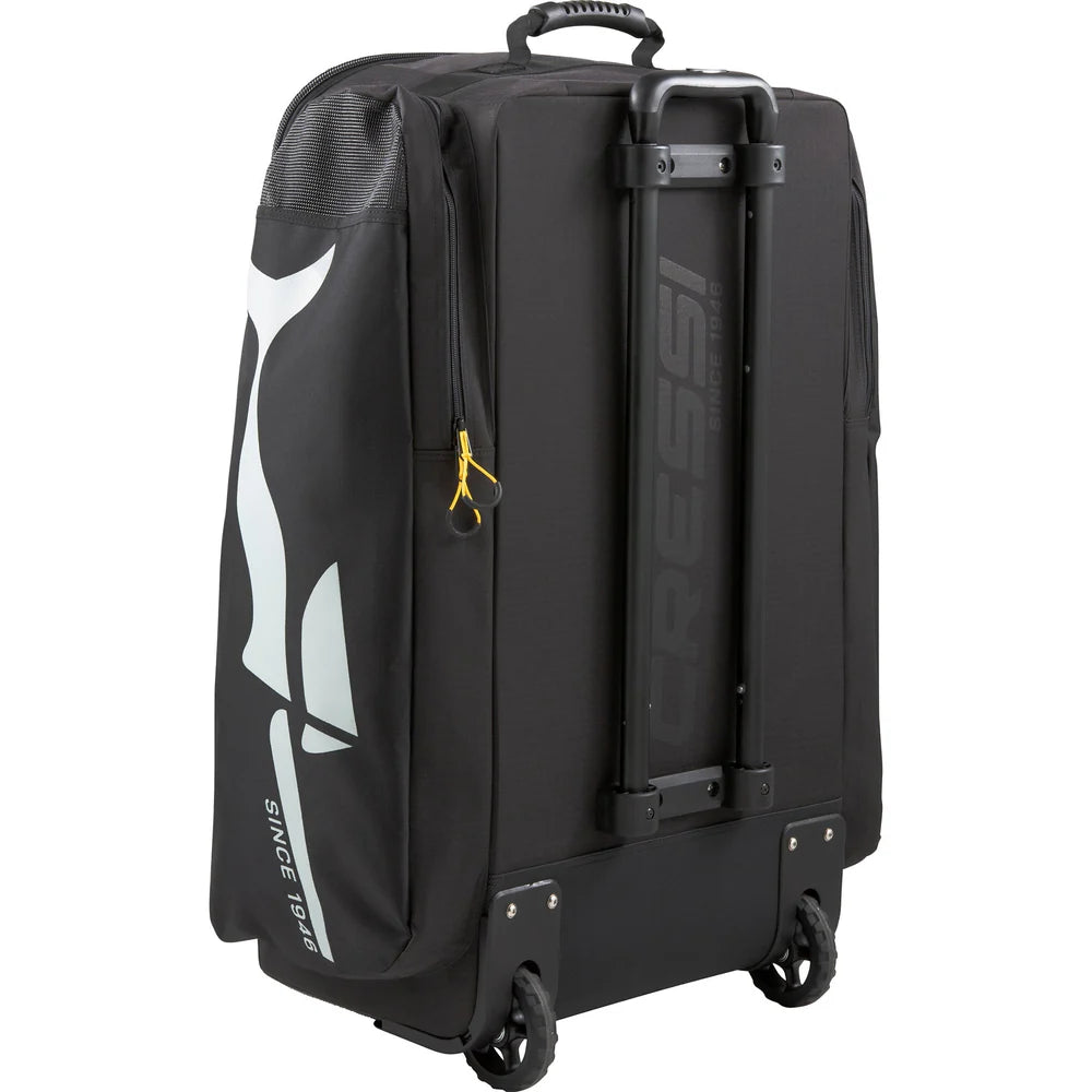 Equipped with large-diameter wheels for smooth maneuverability, the Cressi Moby 3 is the ideal companion for navigating through airports or to the dive site. These wheels are conveniently replaceable, adding longevity to your travel gear. The dive trolley bag also includes two generously sized side pockets, perfect for storing fins and other essentials. For ease of handling, it offers reinforced carrying handles at the top and bottom, complemented by robust YKK zips that enhance the bag's overall resilience and security.