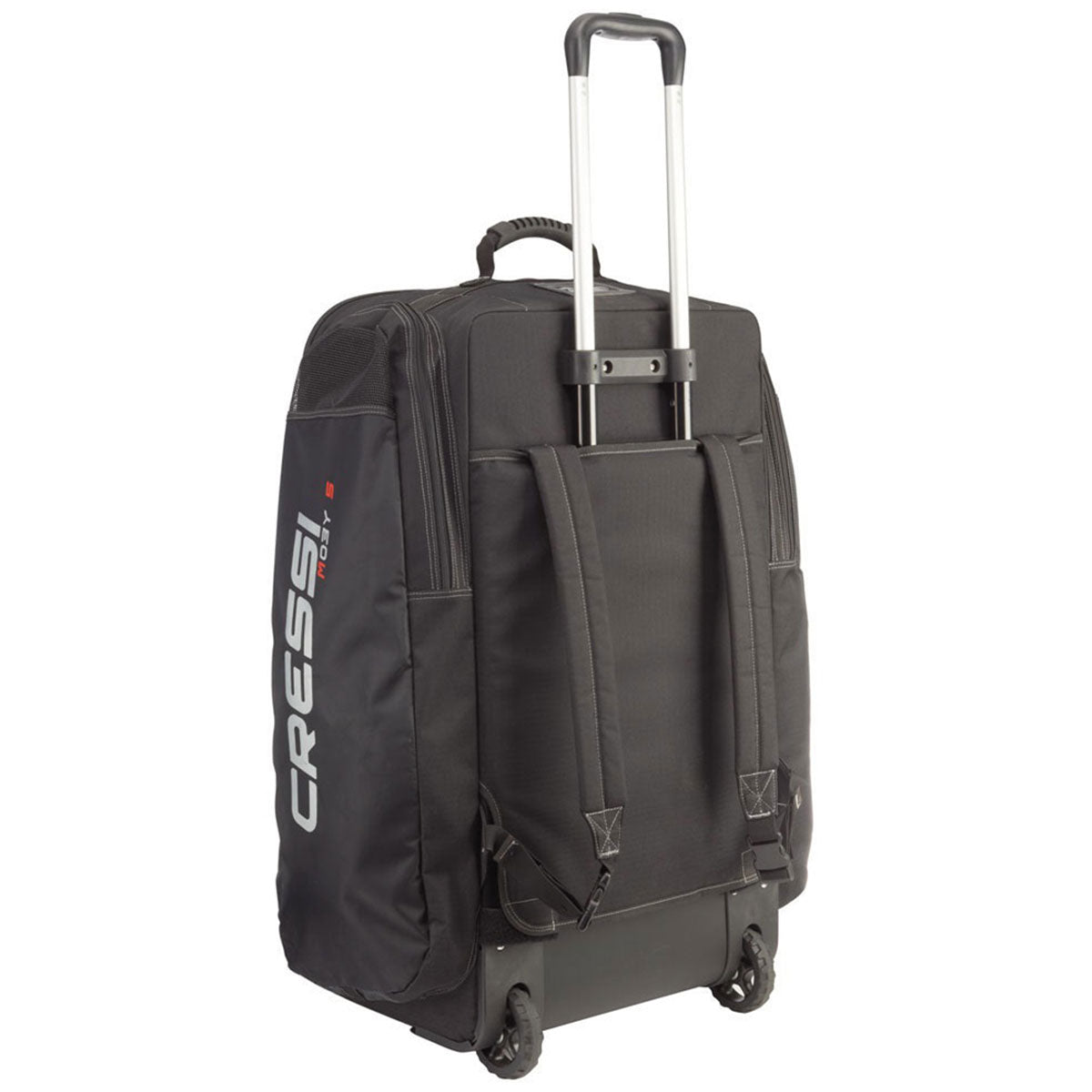 The Moby 5 is a large roller backpack that is made from 300/400-denier nylon. The grades of denier were chosen to keep weight down but keep durability up. The large main compartment has a dual zipper slider U-shaped opening which allowing easy access to all the large gear and accessories stored inside. On the outside of the bag there are two large bellows pockets with dual slider zipper closures, the upper for small items and the lower for a regulator bag. Two side pockets for fins and a small luggage tag window for travel complete the storage area of this great bag. All zippers are strong and durable YKK-design.