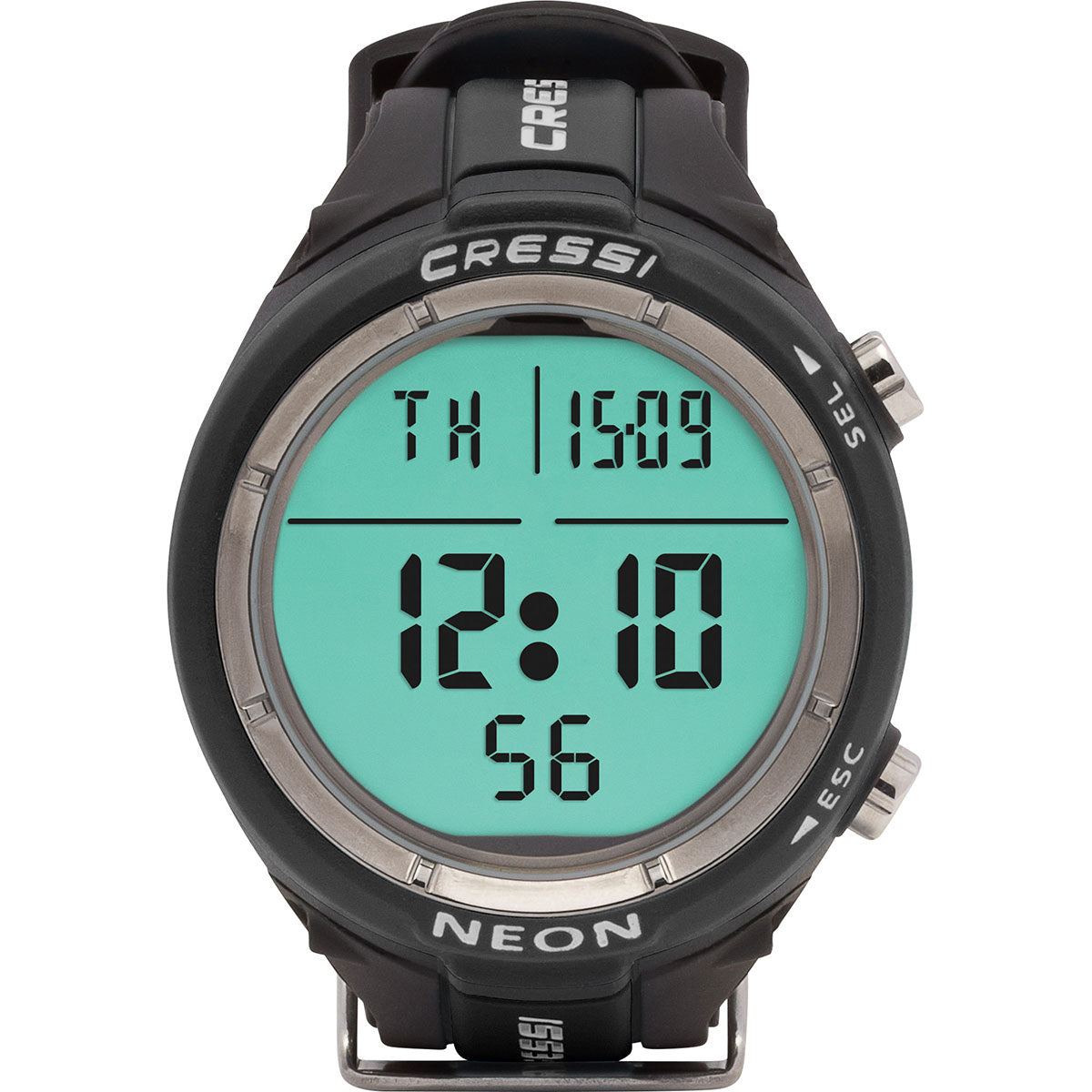 The Cressi Neon Computer has a diameter of only 1.9" (48mm) and a high contrast display of 1.46" (37mm) with extra-large numbers and easy access menu. It is a scuba diving/apnea watch-computer of extremely reduced dimensions. It is also an ideal watch for other underwater activities, thanks to the deactivation option of the "dive" functions that avoids unnecessary alarms ringing while you're snorkeling or swimming. The display is made of mineral glass and the case is a heavy-duty design with steel buttons that have an underwater resistance of up to 394' (120m). PTU rubber wrist band with stainless steel buckle.