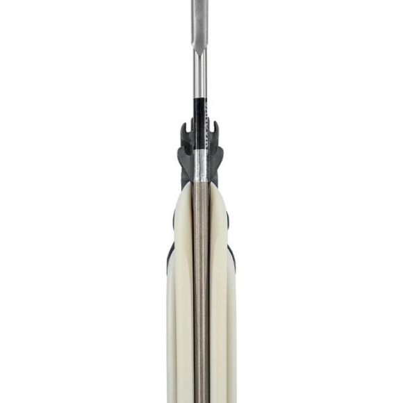 Sandvik shaft Ø6.75mm medium SF, with a single barb & a tri-cut point combined with the new colored nylon drill wishbones, ensure perfect accuracy, ensure perfect accuracy 2 x Ø14 TNT GREY circular band by meter for extreme power. It's available with universal grip in a new color - Cream. It comes with new longer & wider sternal arming support & new integrated shaft rail with electrostatic coating & double rail for minimizing friction.